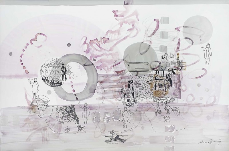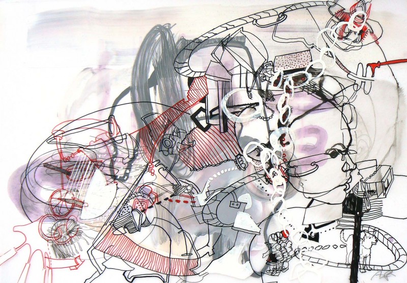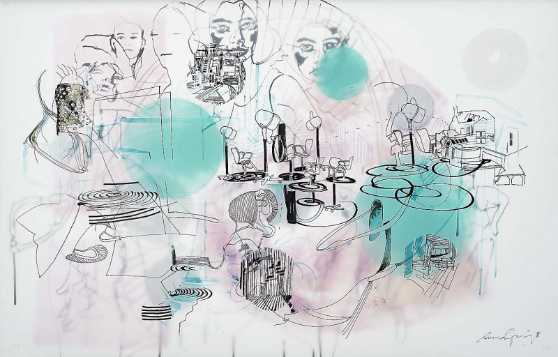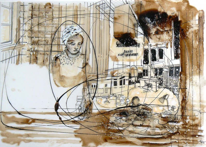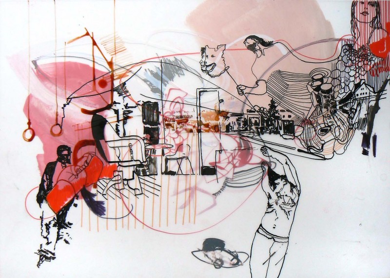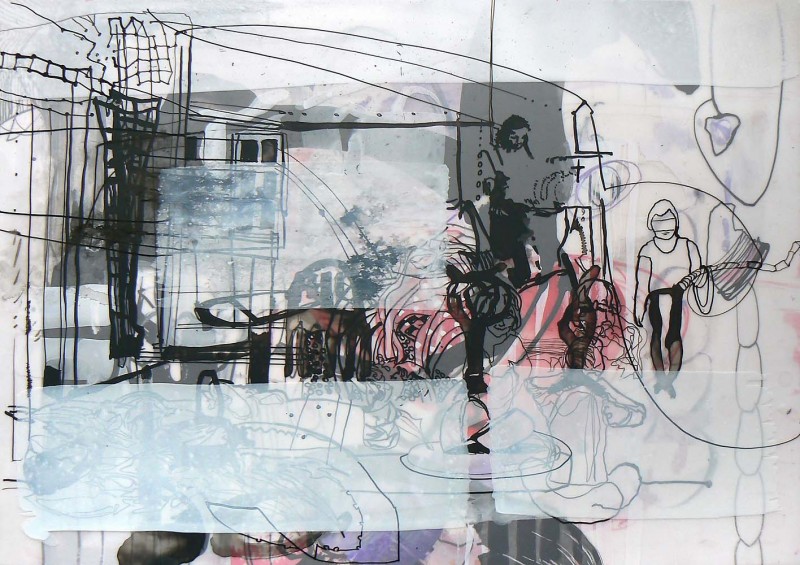 Transluzenz, also der Grenzbereich zwischen Blickdichte und Durchsichtigkeit wird durch das Zeichnen und Malen auf Transparentfolien sichtbar. Als Malmittel dienen mir dazu basische und saure Farbstoffe, die in der Medizin zur panoptischen Färbung eingesetzt werden.
